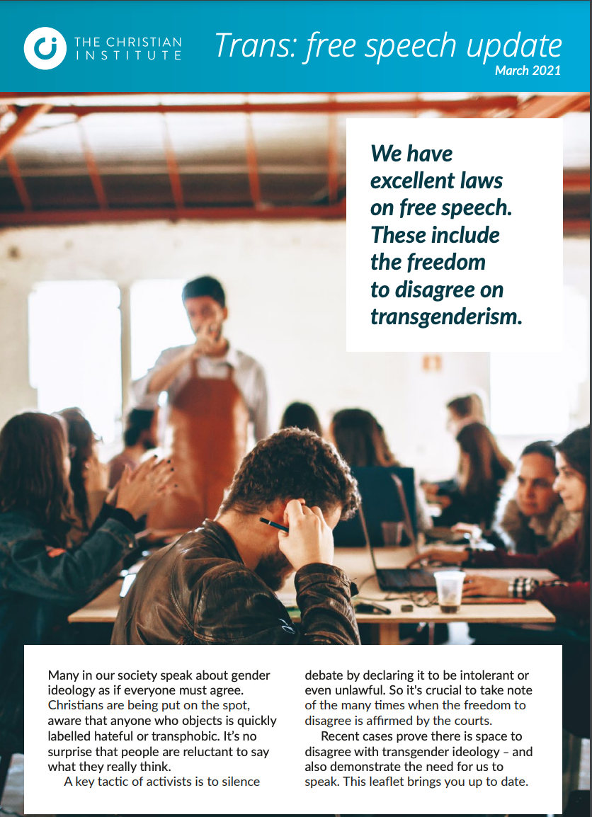 This document, also produced by the Christian Institute, covers free speech laws in relation to transgenderism.